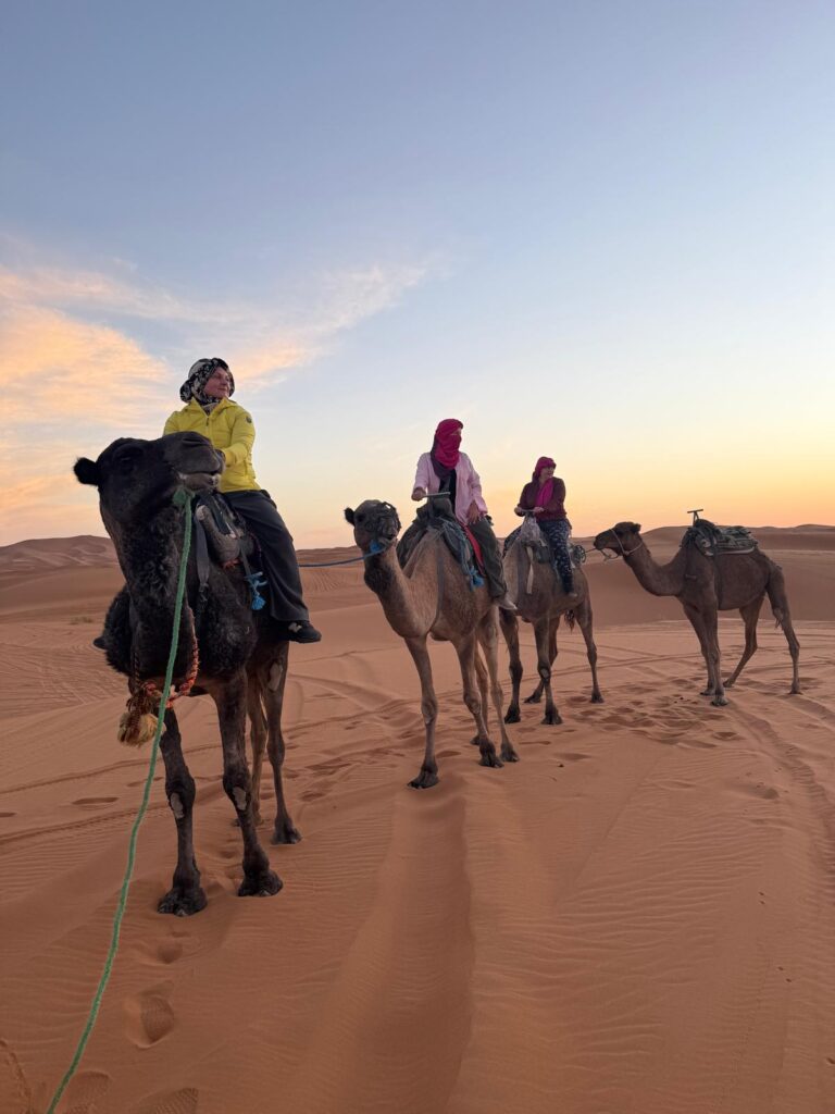 Wyjechałyśmy z miasta pełne wrażeń i oczywiście gotowe na więcej. W tej podróży wszystko było nowe i zaskakujące. Maroko jest inne niż kraje, które do tej pory odwiedzałyśmy, więc wszystkie uczyłyśmy się co lubimy, co niekoniecznie, polubiłyśmy mocno słodzona miętę, fascynowały nas wielbłądy na polach i bezkresne góry Atlas.